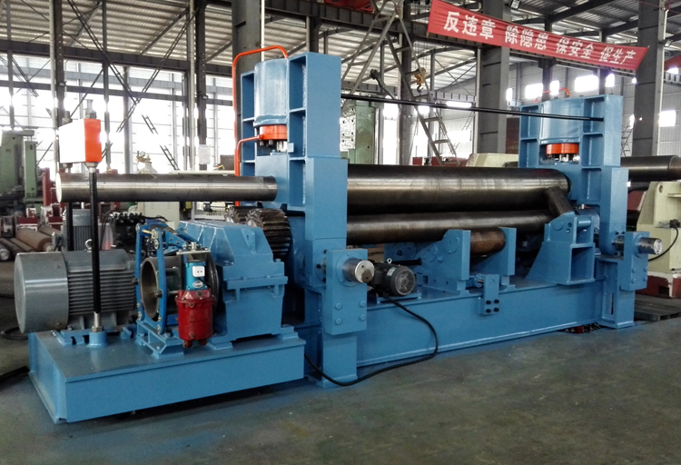 上輥成鼓形狀,下輥的下部有托輥配合調節,從薄板到厚板這一廣泛的范圍內能夠卷制直線度很高的制品;